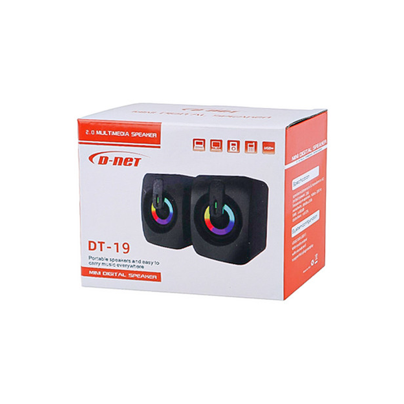 اسپیکر دسکتاپ دی نت مدل DT-19 چیست؟ اسپیکر D-Net DT-19 یک گزینه رومیزی زیبا و کارآمد از برند دینت است که با طراحی مدرن، نورپردازی LED و صدای شفاف، انتخاب محبوبی برای کاربران لپتاپ، کامپیوتر یا میز کار به حساب میآید. این مدل با استفاده از کابل AUX برای پخش صدا و تغذیه از طریق پورت USB، راهاندازی ساده و بدون دردسری دارد.