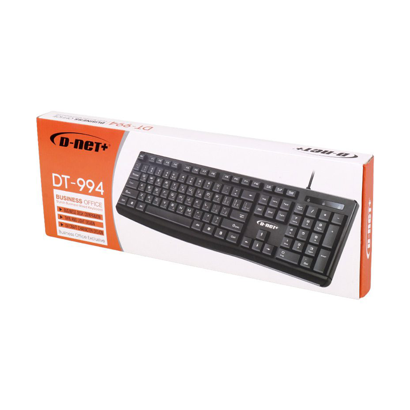 کیبورد D-Net مدل DT-994 یک کیبورد سیمدار ساده، کارآمد و اقتصادی با طراحی مقاوم است. این کیبورد از طریق پورت USB به دستگاه متصل میشود، دارای حروف فارسی حک شده است و برای تایپ روزمره و استفاده اداری مناسب است.