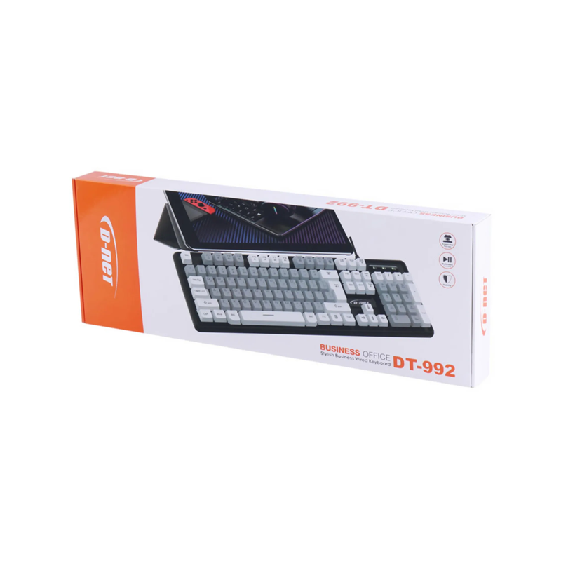 کیبورد سیم دار دی نت مدل DT-992 چیست؟ کیبورد D-Net DT-992 یکی از کیبوردهای پرفروش و اقتصادی برند دینت است که برای کاربری روزمره، محیطهای اداری و دانشجویی طراحی شده است. این کیبورد سیمدار با استفاده از رابط USB به کامپیوتر متصل میشود و بدون نیاز به نصب نرمافزار، بهصورت Plug & Play آماده استفاده است.