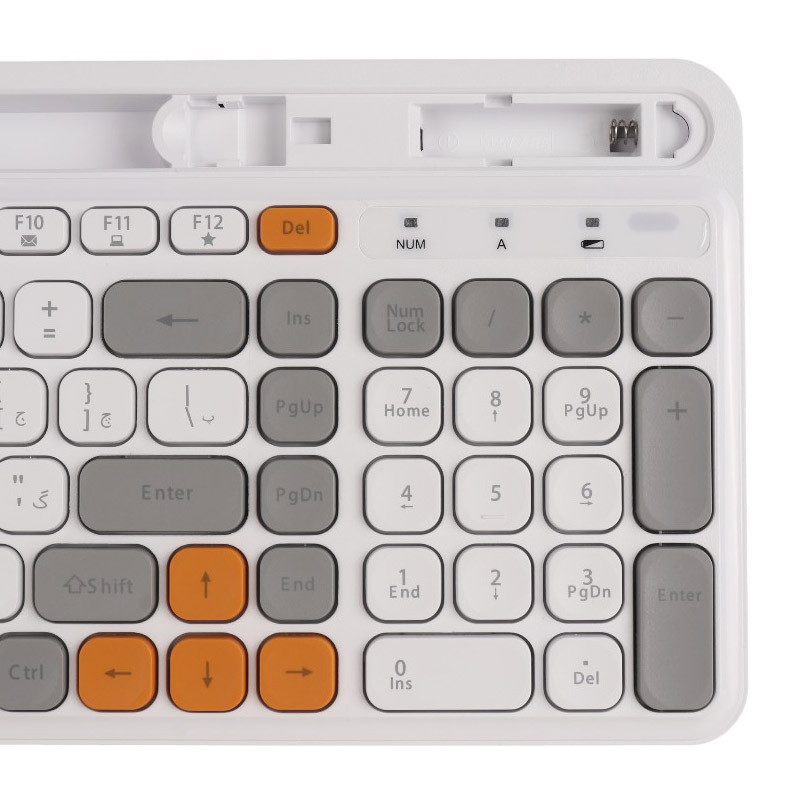 کیبورد این مجموعه دارای کلیدهای استاندارد ممبران با چیدمان کامل و حروف فارسی حکشده است که آن را برای تایپ فارسی، کارهای اداری، نوشتن و استفاده طولانیمدت کاملاً مناسب میکند. عملکرد نرم کلیدها باعث کاهش خستگی دست در تایپهای طولانی میشود.
