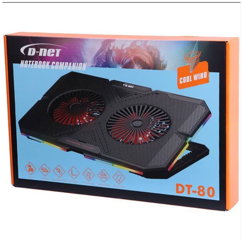 کول پد لپ تاپ دی نت - مدل DT-80 چیست؟ کول پد لپتاپ دینت مدل DT‑80 یک پایه خنککننده پیشرفته و کاربردی برای لپتاپهای ۱۴ تا ۱۷ اینچی است که با هدف بهبود گردش هوا و کاهش دمای دستگاه طراحی شده است. این محصول مجهز به دو فن قدرتمند ۱۴۰ میلیمتری با سرعت ۲۴۰۰ دور در دقیقه میباشد که جریان هوای کافی را برای خنک نگه داشتن لپتاپ ایجاد میکند. استفاده از کول پد DT‑80 به خصوص در استفاده طولانی مدت و اجرای بازیهای سنگین یا نرمافزارهای مهندسی و گرافیکی، باعث افزایش عملکرد و طول عمر دستگاه میشود.