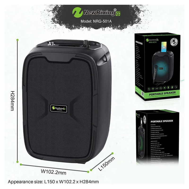 اسپیکر بلوتوثی New Rixing مدل NRG-A501 چیست؟ اسپیکر بلوتوثی New Rixing مدل NRG-A501 یک اسپیکر قابل حمل و کاربردی است که برای پخش موسیقی در شرایط مختلف مانند منزل، محل کار، سفر و دورهمیها طراحی شده است. این اسپیکر با پشتیبانی از اتصال بلوتوث، امکان پخش بیسیم موسیقی از گوشی موبایل، تبلت و سایر دستگاههای هوشمند را بهسادگی فراهم میکند.